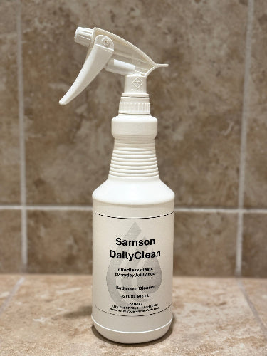 Samson DailyClean is the lighter, faster, everyday companion to the original DeepCleanse formula. Designed for quick maintenance between deep cleans, it keeps glass, tile, and fixtures spotless with a simple daily mist — no scrubbing, no residue, no streaks.
